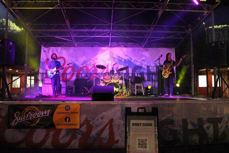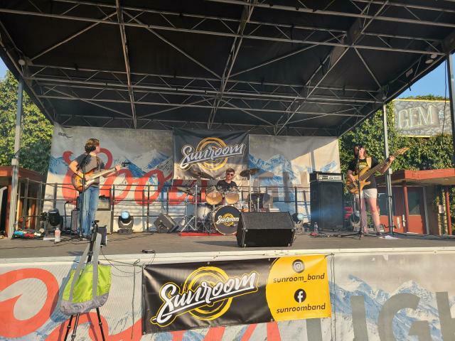 Recalling their first meeting, Evan states, “We met in showband [class] actually, and Jayci played bass and keyboard for them. So she came up to us because the two of us had said something about being in a band and needing a bassist. She said ‘If you need a bassist, I’ll be your bassist.’” A few months later in early 2020, Sunroom secured their first gig at the Skyline Club and Grill in Clovis, which was where they posted their first YouTube upload and earned their Facebook follower. Austin recalls that it was the first time they got tipped.